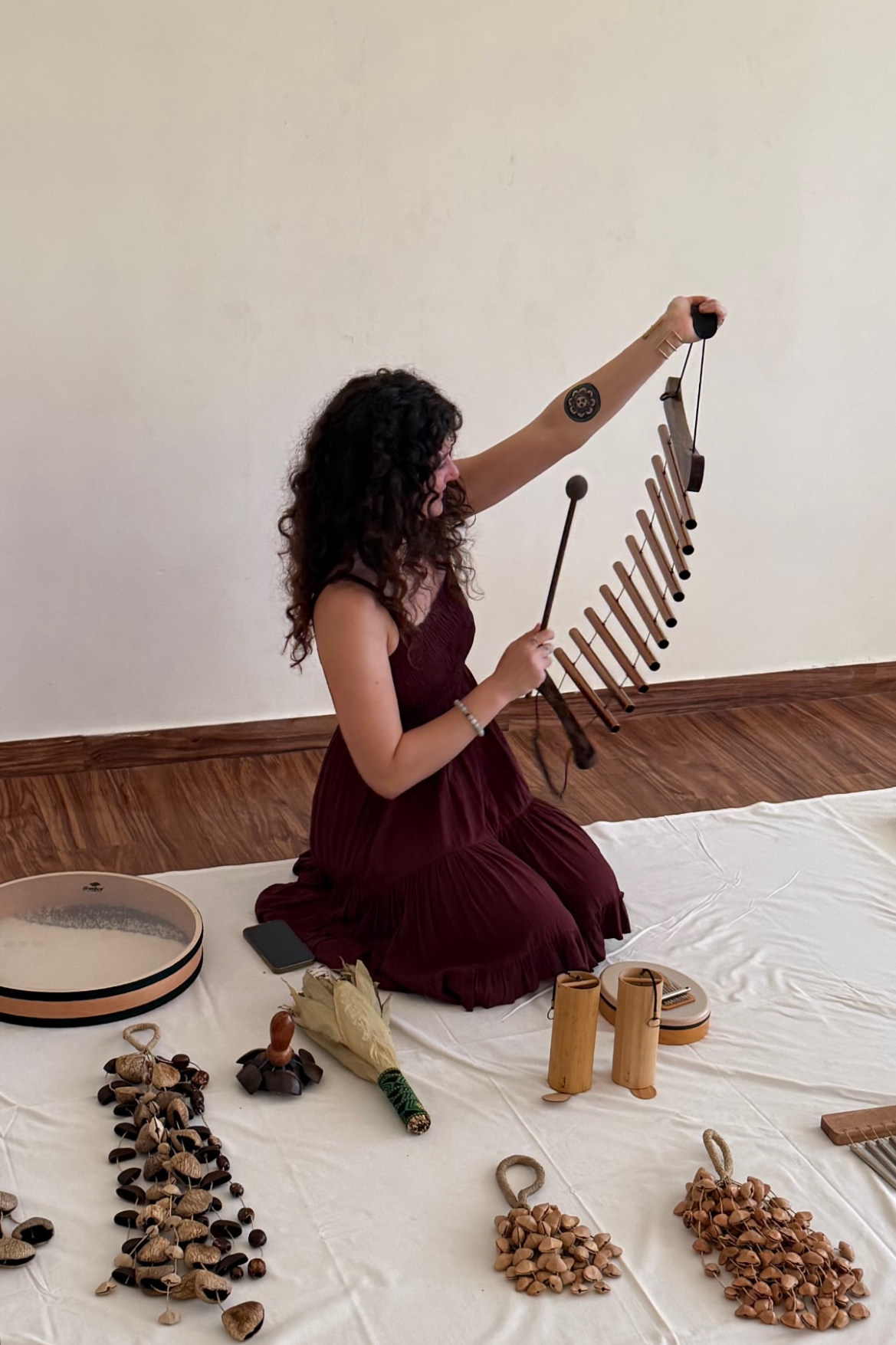 Gem Flows is a sound healer, song circle holder and artist from London. She has trainings in Forest School, Sound Healing and Yoga. She bases her music around nature connection, inner healing and community.